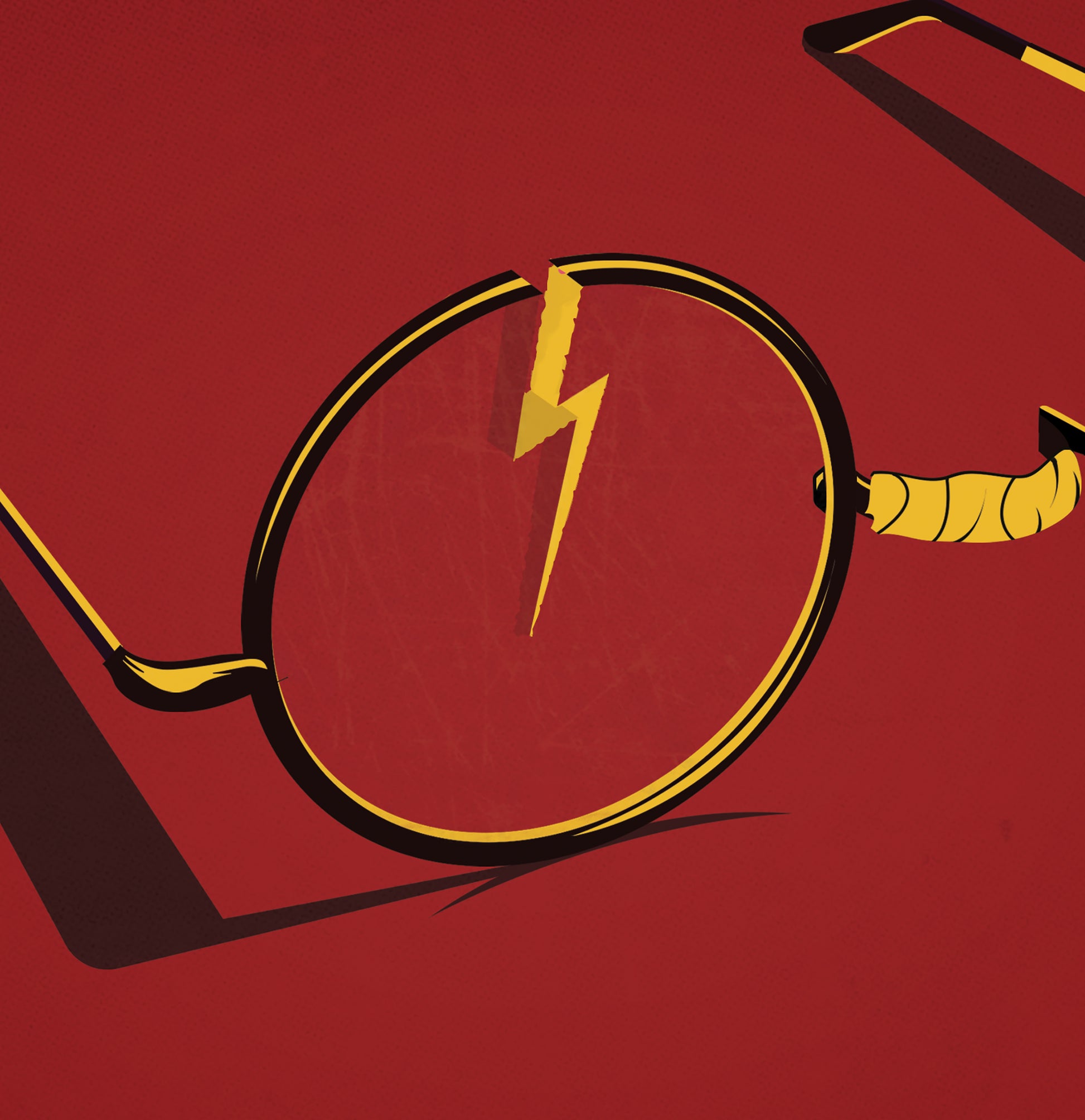 A unique minimalist Harry Potter Poster inspired by the Harry Potter Movies and Book series starring Daniel Radcliffe, Emma Watson and Rupert Grint written by J.K Rowling. This illustration combines Harry Potter's famous glasses with his unique iconic lightning bolt shaped scar on a Gryffindor red and gold colour palette.